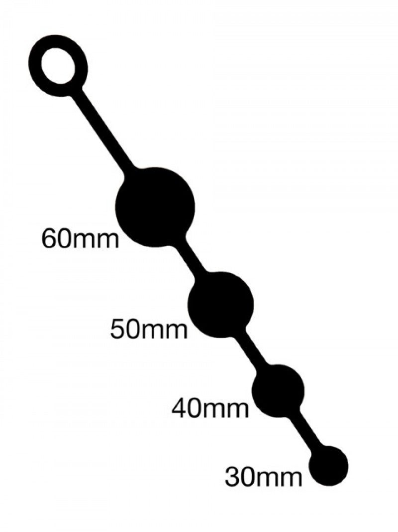 Neljä kumista palloa yhdistettynä joustavalla, kestävällä, kumisella varrella. Päässä rengas, josta pallot saa helposti vedettyä ulos. Valmistettu lääketiedetasoisesta silikonista. Kokonaisuus on yhtä kappaletta, ei saumoja. Pallojen halkaisija on 30mm - 60mm kokonaispituus on 40cm. Voidaan käyttää silikoni tai vesipohjaisten liukuvoiteiden kanssa.